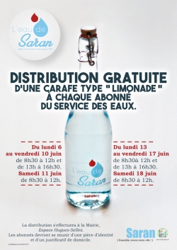 La mairie de Saran organise une distribution gratuite d'une carafe type « Limonade » à chaque abonné du service des eaux.