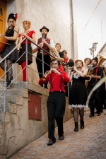 Utilisant le langage des corps et celui de la musique, Lignes de fuite propose un parcours musical parsemé de haltes et de moments d’improvisations. Cette déambulation spontanée, loufoque et poétique se construit de manière libre, en réaction à l’environnement immédiat et au public. A la fois mobile et en suspens, ce spectacle s’adapte à l’espace et place les musiques traditionnelles au coeur du discours. Avec ses chorégraphies spontanées, ses mouvements d’humeurs et ses instants de cacophonies imprévisibles, Lignes de fuite transforme la ville en une déambulation poétique et enjouée. Venez découvrir ces 8 musiciens lyonnais, dans ce spectacle alliant arts de la rue et musiques traditionnelles.