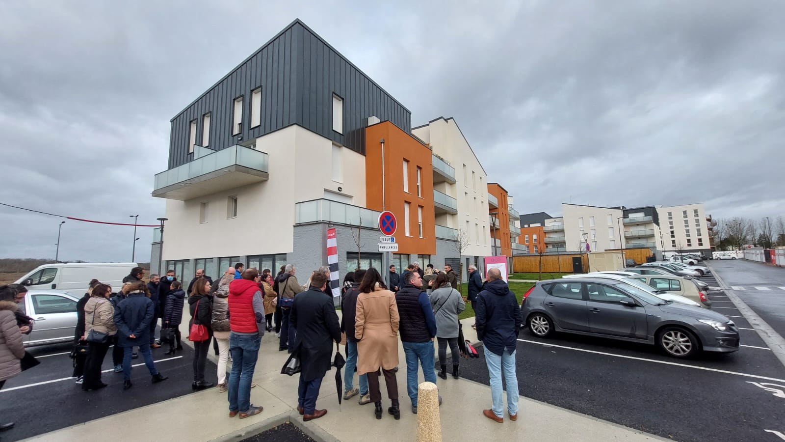 Il y a bientôt 2 ans, nous étions présents ici-même pour la pose de la 1re pierre de cette résidence. Aujourd’hui, comme vous pouvez le voir, le quartier s’est considérablement transformé.